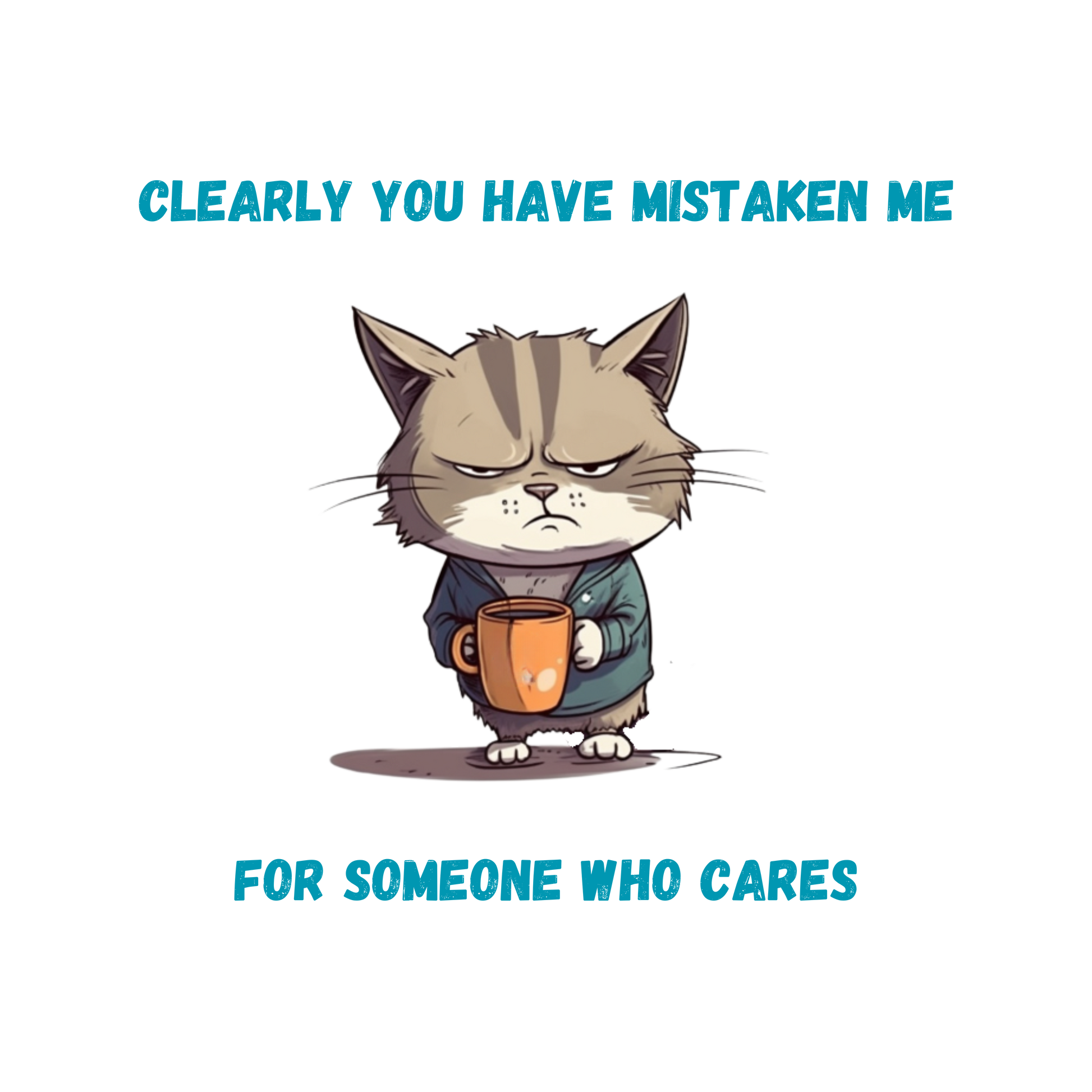 Are you the sarcastic one of the bunch? Have a particularly acerbic friend? Our "Clearly You Have Mistaken Me For Someone Who Cares" design is the perfect fit for the secretly (or not so secretly!) socially intolerant in all of us. Let our perturbed kitty share the feeling we so often have and only wish we could say out loud!