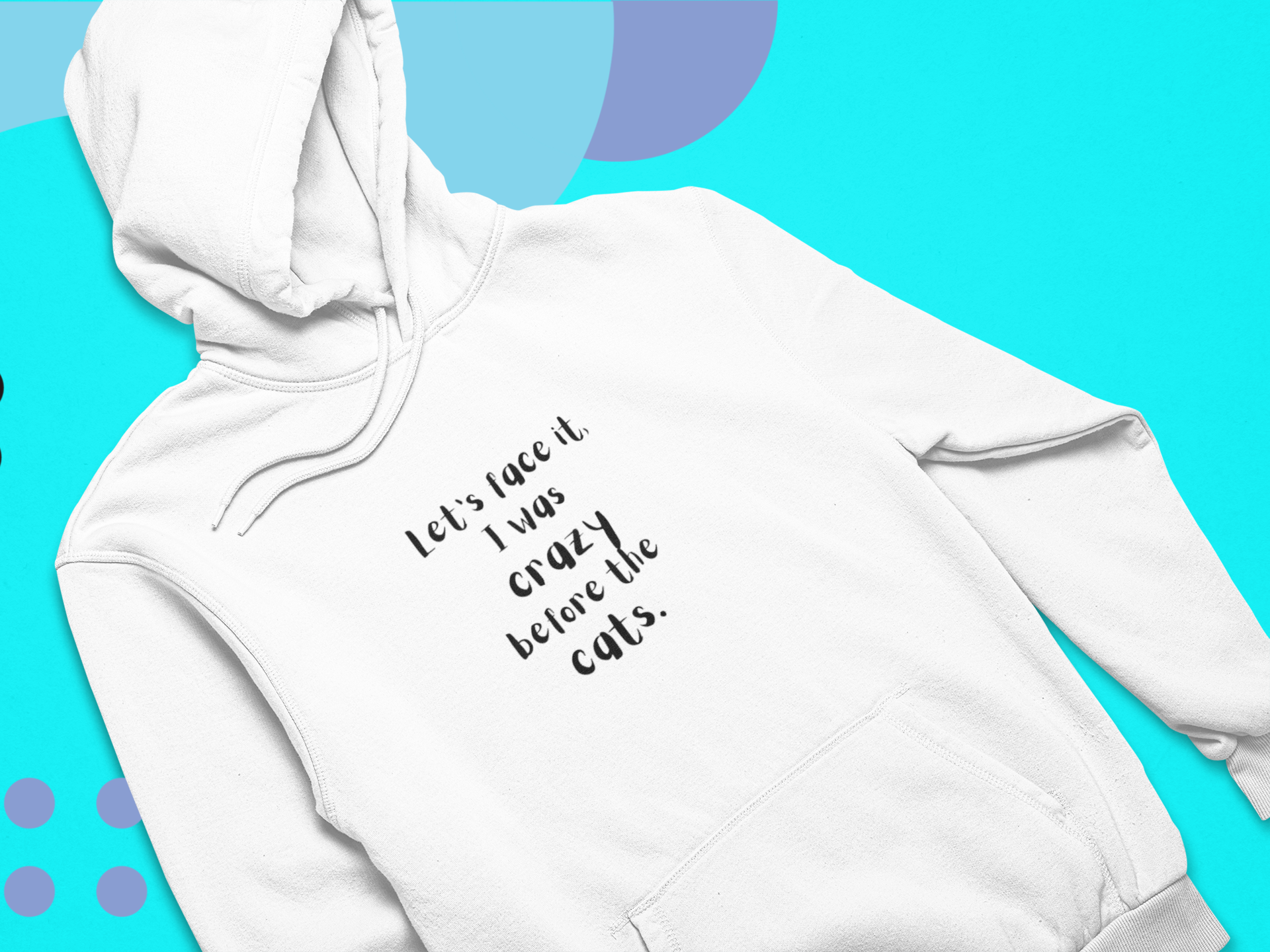 Are you feline like you've gone a little batty in the presence of your whiskered overlords? This hoodie is your official badge of honor! Whether you're a full-on cat whisperer or just a humble servant to your furball friends, declare your sanity's honorable sacrifice with a side of humor. Get ready for a meow-velous time, because when it comes to being crazy in the company of cats, you're the reigning champion! đ¸ #CatLoversUnite