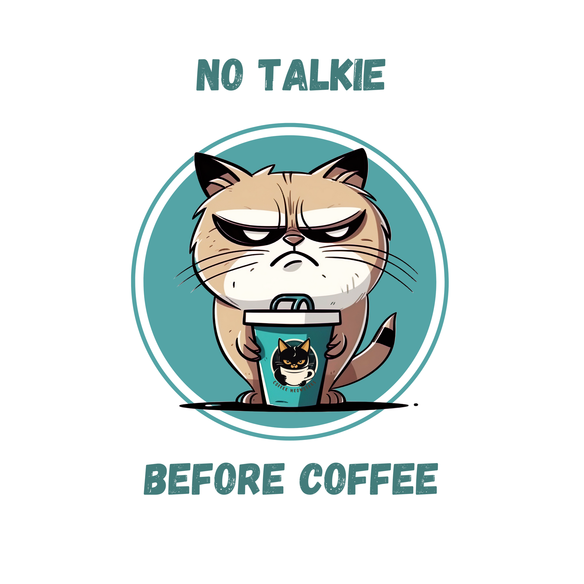As far as we’re concerned, any conversation before the first hot mug of coffee is a sin of severe proportion. Our “No Talkie Before Coffee” design features our appropriately annoyed kitty giving off the most purr-turbed vibe, perfect for displaying your morning boundaries to your chatty partner or co-workers. If they don’t heed the warning, well, you can’t be held accountable for the consequences!